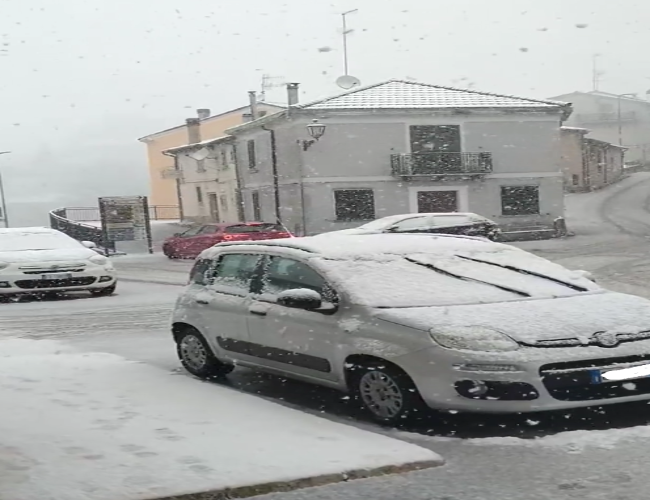 ISERNIA – Colpo di coda dell’inverno, strade e paesi imbiancati dall’alto Molise al Matese.