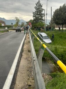 A poca distanza, intorno alle 16, è avvenuto un altro incidente che ha interessato due auto, una Panda e un’Audi che è finita fuori strada lungo le sponde del torrente Rava all’incrocio di via Maria Pia. Sul posto i sanitari del 118 che hanno soccorso le persone coinvolte e i Carabinieri della Compagnia di Venafro per la cause e la dinamica dell’incidente. Intervenuti anche i vigili del fuoco per il recupero dell’auto.