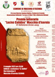 MACCHIA d’ISERNIA – Sono più di 200 gli autori provenienti da tutta Italia e dall’estero, per un totale di circa 300 opere, in concorso al Premio Letterario “Lucius Calidius” – VI edizione, che si terrà a Macchia d’Isernia sabato 6 maggio.