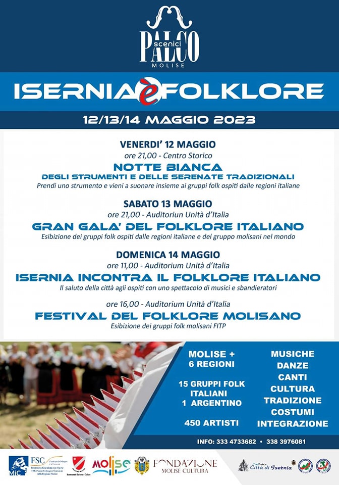 L’organizzazione di “Isernia è Folklore” comunica che, sulla base delle previsioni metereologiche per domani e dopodomani, il programma dell’evento subirà alcune modifiche.