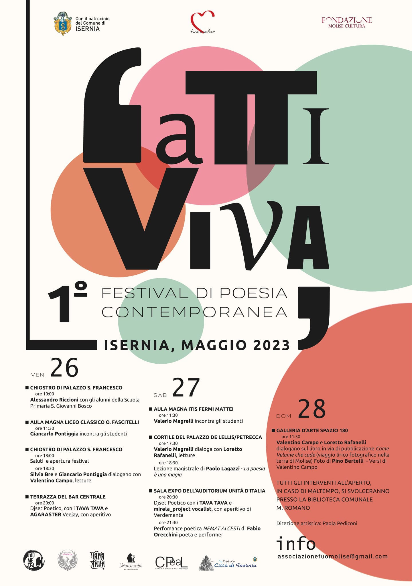 ISERNIA – Comincia oggi il Festival di poesia contemporanea FATTI_VIVA, alla sua prima edizione, è una vera festa della Parola, tre giorni intensi di incontri e presentazioni con poeti tra i più illustri nel panorama della poesia contemporanea italiana.