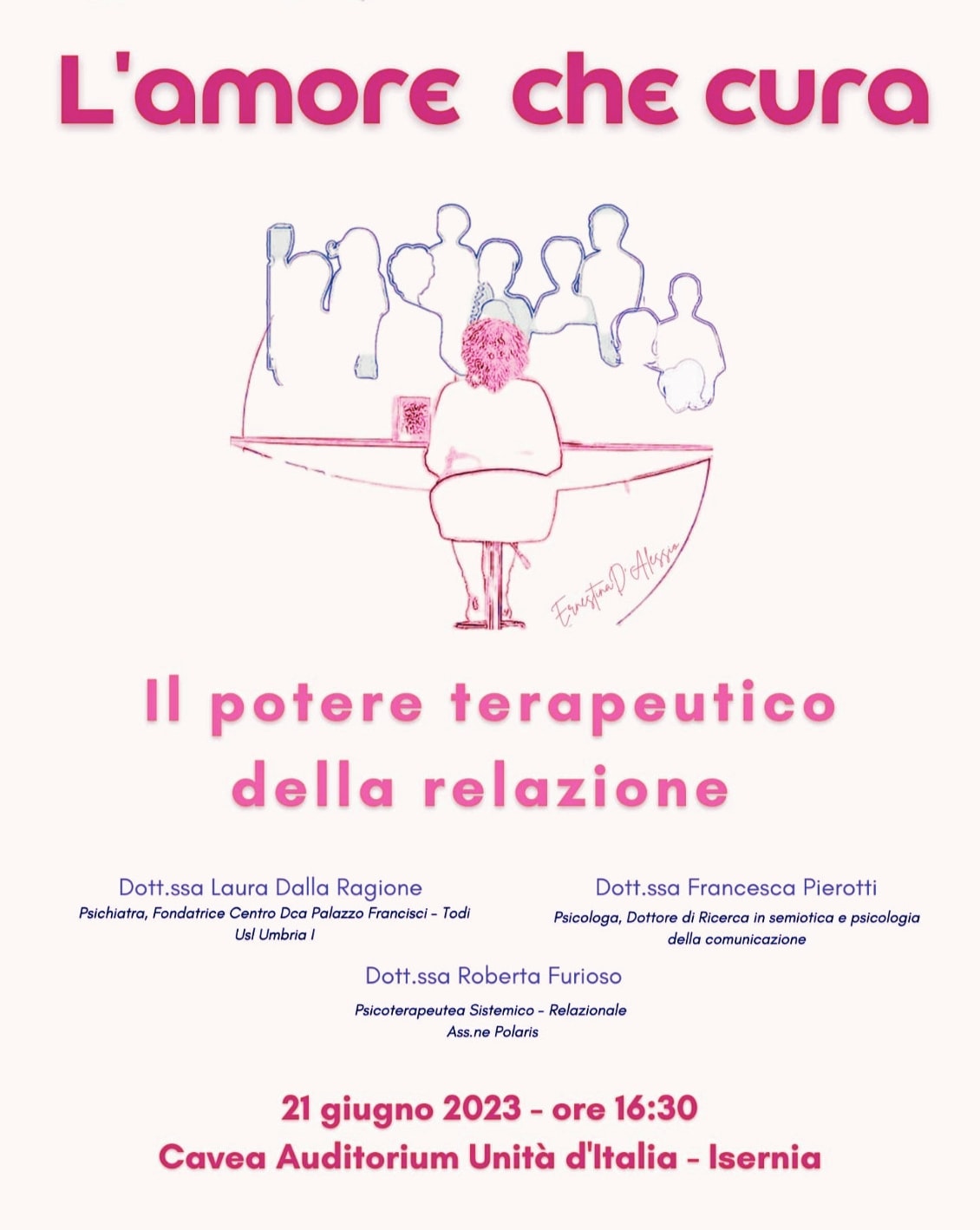 ISERNIA – Domani, mercoledì 21 giugno, alle ore 16.30, presso l’Auditorium Unità d’Italia, si svolgerà il convegno dal titolo “L’amore che cura: il potere della relazione terapeutica” .