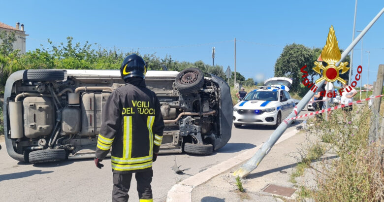 TERMOLI – Auto ribaltata al centro della carreggiata a Termoli in via Sangro.