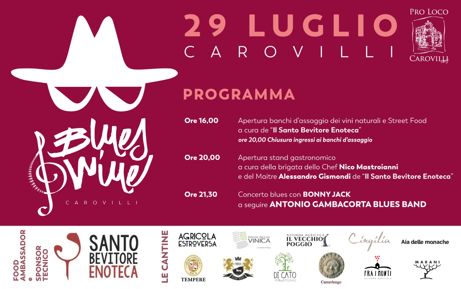 La Pro Loco “Monte Ferrante” di Carovilli nel presentare il programma del Blues & Wine 2023, che si terrà in Piazza Municipio e Largo Palazzo il giorno 29 Luglio, precisa in un comunicato che la manifestazione avrà inizio “alle ore 16:00, in Largo Palazzo, con l’apertura dell’area degustazione dove ai banchi d’assaggio saranno presenti i vini naturali di 12 produttori affermati nel panorama enologico nazionale. Tra queste, ricordiamo le abruzzesi AgricolaEstroversa, Vini Cingilia e Azienda Vini Di Cato, per poi andare in Toscana con Podere Anima Mundi e, passando per il Lazio con Agricola Fra i Monti e Il Vecchio Poggio, giungere fino in Campania con Aia delle Monache e Cantine Tempere, in Basilicata con Camerlengo con un tuffo finale nelle Marche con Sergio Marani dopo una passeggiata alle pendici del Vesuvio con Cantine Matrone. Non mancherà il nostro Molise con la presenza di AgricolaVinica. I banchi d’assaggio resteranno aperti sino alle ore 20:15 e dalle ore 20:00 sarà possibile assaggiare, presso lo stand gastronomico, le proposte di Street Food presentate dalla brigata dello Chef Nico Mastroianni del “Santo Bevitore Enoteca”, realtà di pregio nell’ambiente gastronomico nazionale. Dalle 22:00, poi, spazio alla musica blues in Piazza Municipio, con il concerto di apertura del onemanblues Bonny Jack e, a seguire, del famoso bluesman italiano Antonio Gambacorta con la sua band.”
