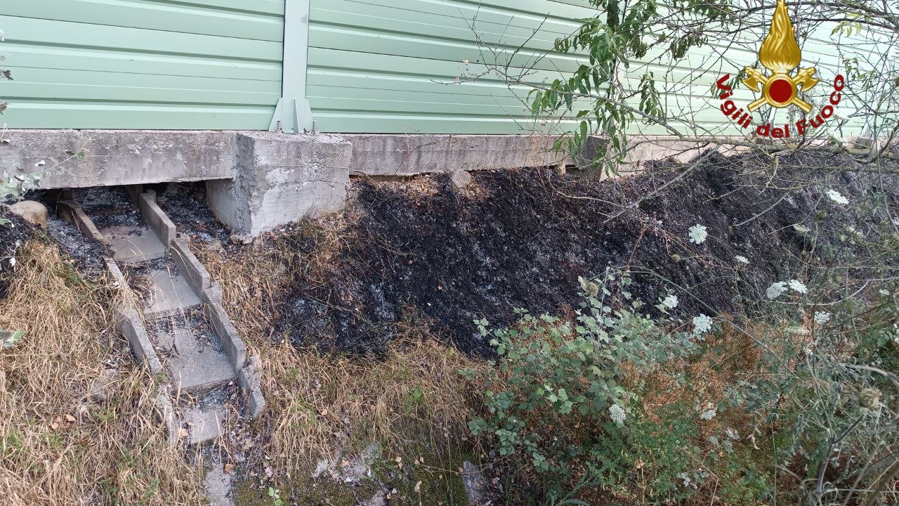 Le fiamme hanno interessato anche la carreggiata della statale con interruzione momentanea della viabilità durante le operazioni di spegnimento.