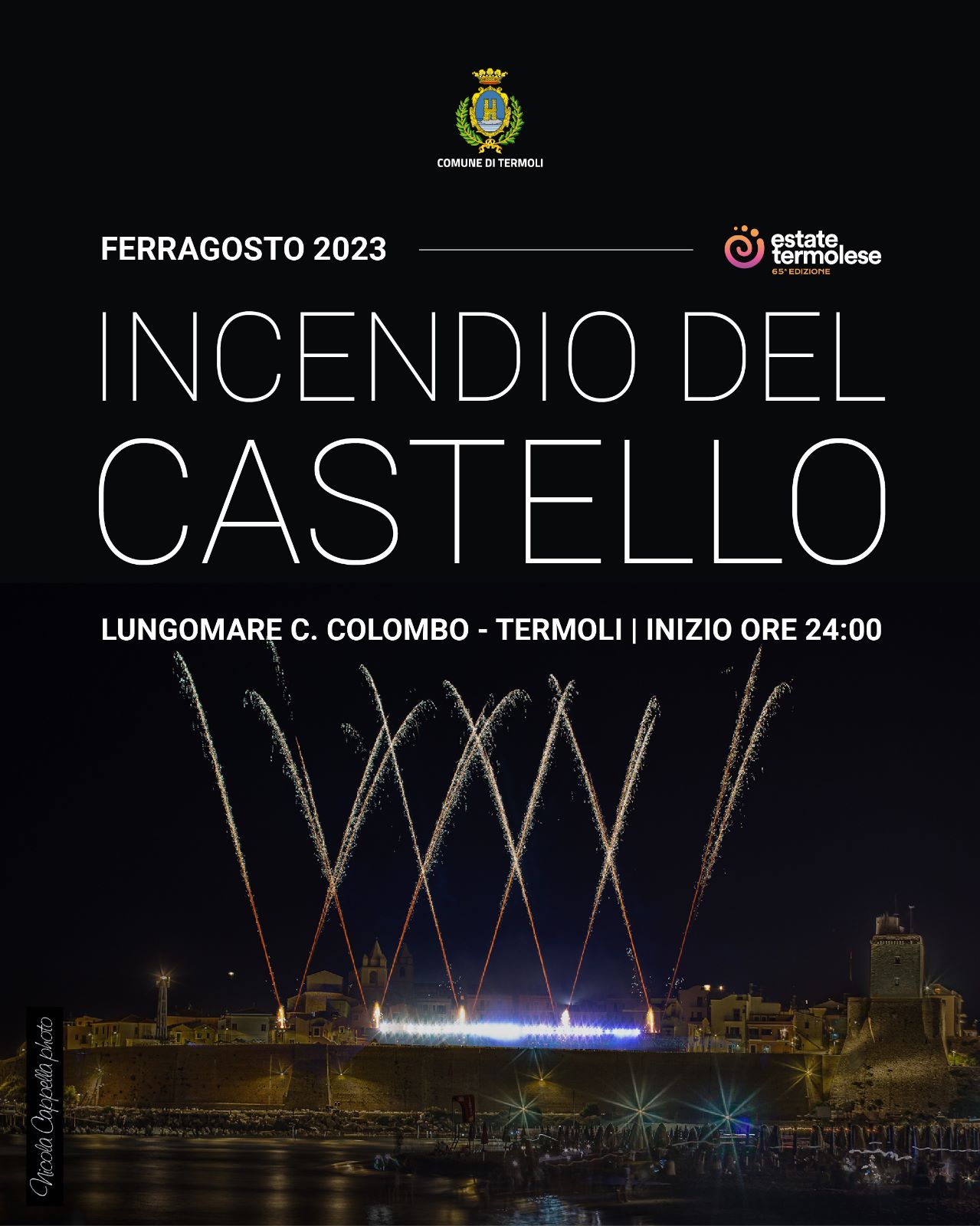 Uno spettacolo di luci e colori al quale si potrà assistere dalla spiaggia del lungomare nord Cristoforo Colombo. Un appuntamento annuale che segna il Ferragosto accompagnando le migliaia di presenti in una notte magica scandita dal tradizionale incendio del castello.
