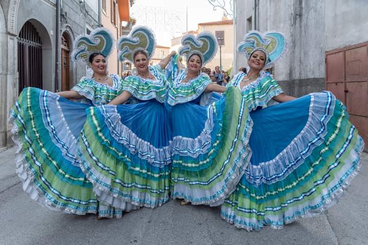 Dopo una prima serata dedicata all’integrazione tra i gruppi ospiti e il pubblico, durante la quale si è ballato e cantato tutti insieme sulle musiche tradizionali di diversi continenti, si è arrivati il giorno successivo alla kermesse vera e propria con le spettacolari esibizioni di tutte le rappresentative giunte in paese.