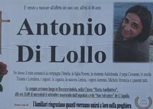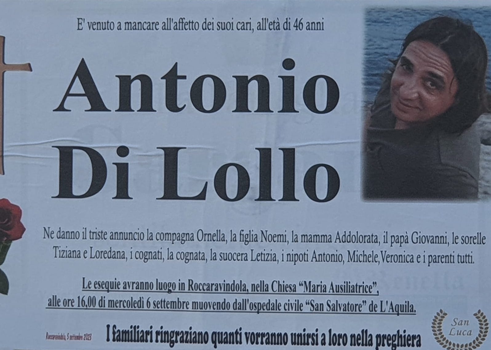 A darne l’annuncio sono stati i familiari che hanno comunicato che le esequie avranno luogo domani mercoledì 6 settembre alle ore 16,00 nella chiesa “Maria Ausiliatrice” a Roccaravindola, comune nel quale viveva Antonio.
