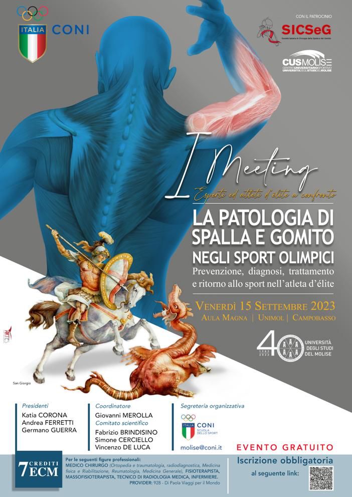 Il numero uno del movimento olimpico nazionale Giovanni Malagò si è espresso con grande entusiasmo sulla convention. «Campobasso – ha rimarcato – ospita un appuntamento importante. Chiunque fa sport ha problemi alla spalla ed al gomito e queste situazioni declinate nel novero sport olimpici, soprattutto a meno di un anno dai Giochi di Parigi 2024, sono di ulteriore e stretta attualità e potranno senz’altro arricchire i partecipanti in virtù della presenza di docenti di rilievo. Questo appuntamento renderà Campobasso caput mundi. Proprio per questo, oltre a dare il proprio patrocinio, il Coni sarà anche cooprotagonisti con la presenza del professor Ferretti dell’istituto di medicina dello sport, una eccellenza strutturale che le altre nazioni ci invitano. Resto convinto, peraltro, che iniziative come questa possano unicamente arricchire».