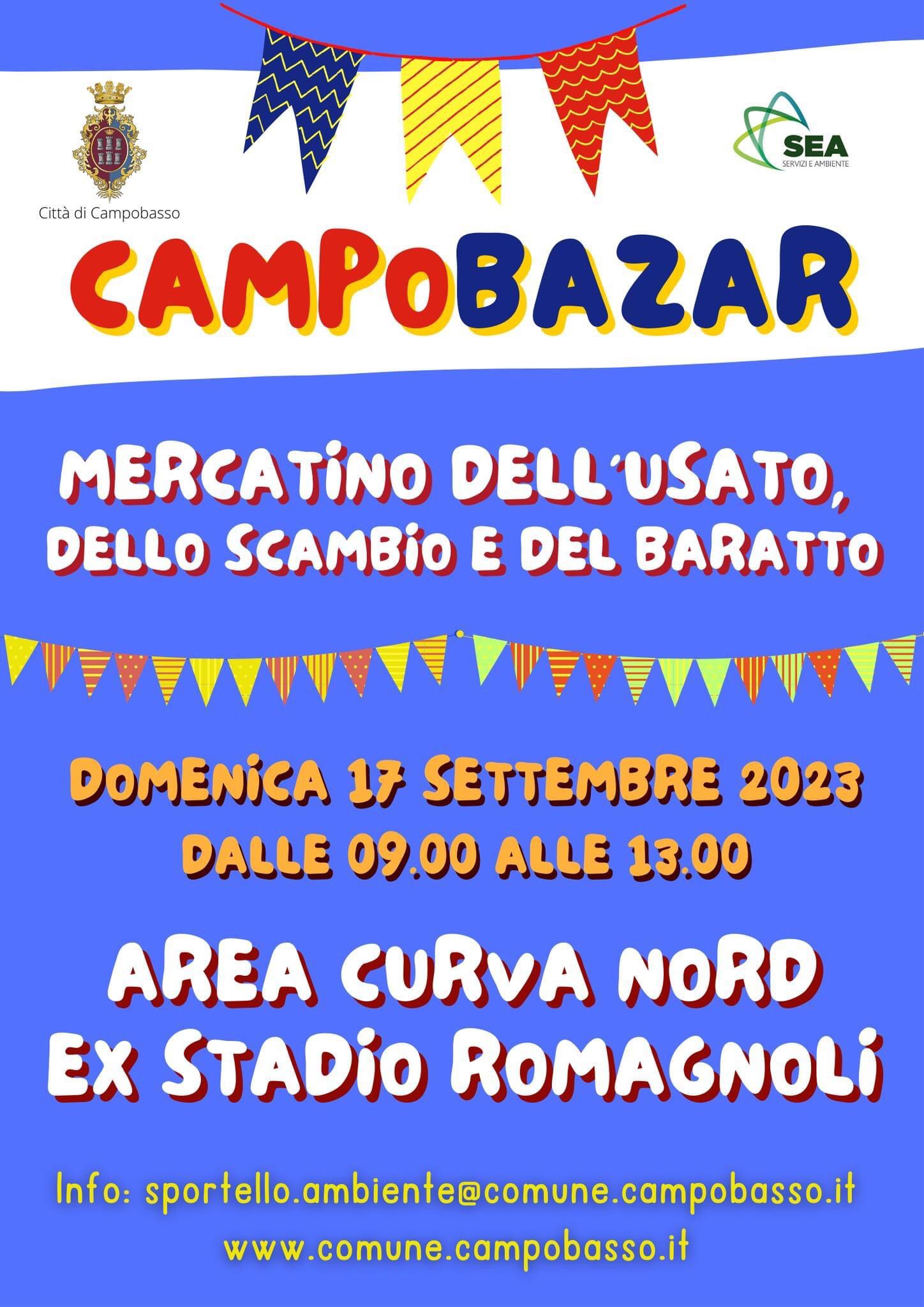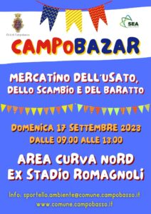 CAMPOBASSO – Dopo la pausa estiva, il 17 settembre riprende il Campobazar, il mercatino dell’usato dello scambio e del baratto, promosso dal Comune di Campobasso e aperto a tutti i cittadini.
