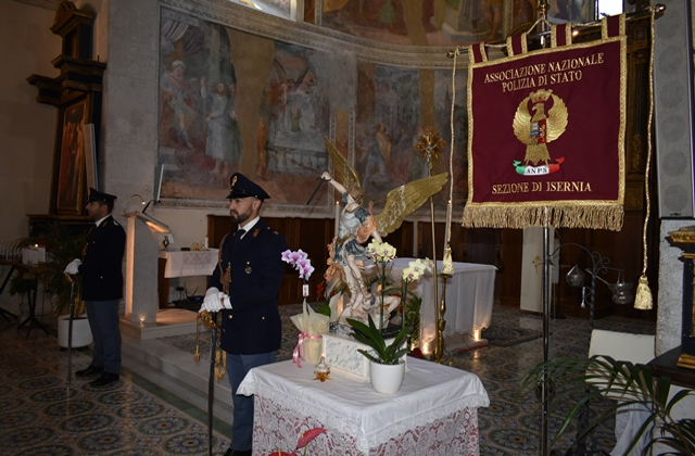 ISERNIA – Questa mattina, venerdì 29 settembre, la Polizia di Stato ha reso omaggio al suo Patrono e Protettore San Michele Arcangelo, con una Santa Messa officiata da S.E. Mons. Cibotti, Vescovo della Diocesi di Isernia-Venafro, coadiuvato dal Cappellano regionale della Polizia di Stato, don Francesco Rinaldi.