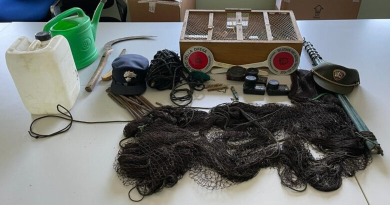 Le violazioni penali contestate in flagranza di reato sono riconducibili al maltrattamento di animali e al furto venatorio aggravato in danno del patrimonio indisponibile dello Stato. Si è proceduto immediatamente al sequestro di tutto il materiale e al fermo dei due bracconieri che avevano catturato già diciannove cardellini, tenuti all’interno di apposite gabbie.