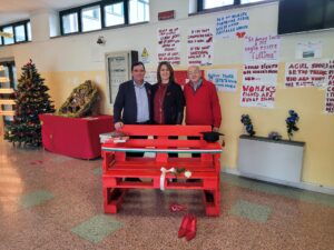 CAMPOBASSO – In occasione del 25 novembre gli studenti dell’Ipia Montini in Via San Giovanni a Campobasso hanno realizzato una panchina rossa con materiale di recupero per sensibilizzare la scuola al tema di grande attualità della violenza sulle donne.