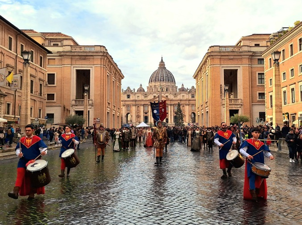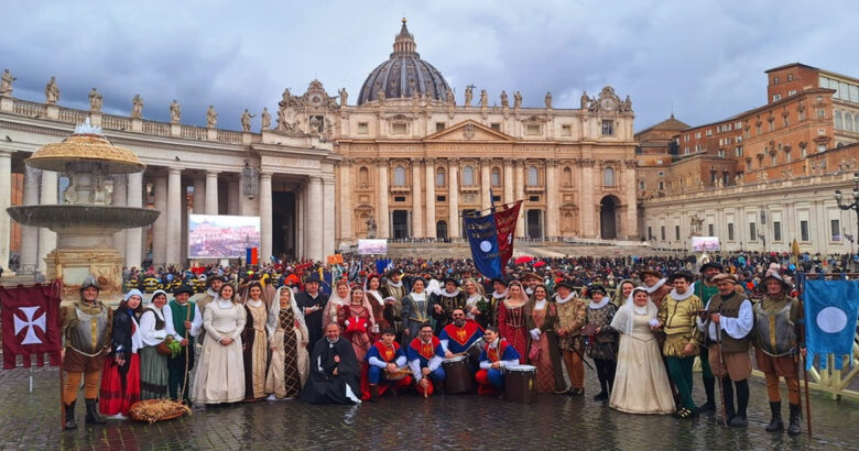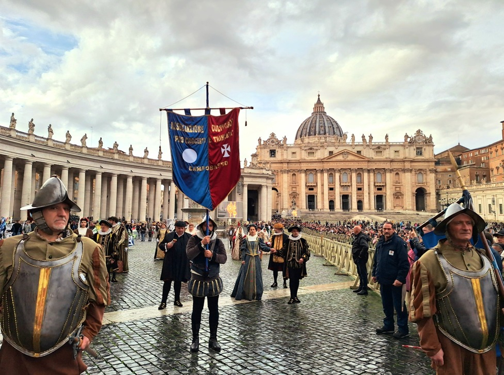 Dopo 25 anni dalla prima volta insieme agli “Ingegni” del di Zinno e dopo 6 anni dalla seconda volta avvenuta nel 2018, successivamente alla “‘Ndocciata” di Agnone, il corteo storico dei Crociati e dei Trinitari è tornato a sfilare per la terza volta a Roma, in Piazza San Pietro.