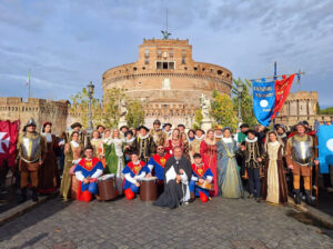 Bellezza, compostezza e maestria delle movenze di tutti i componenti del corteo hanno, quindi, conquistato il pubblico presente, ove gli abiti sontuosi, le armi, i vessilli, i musici e l’entusiasmo hanno messo ancora più in risalto l’eleganza del corteo storico di Campobasso che ha sfoggiato la sua imponenza lungo Via della Conciliazione, fino alla Basilica partendo da Castel Sant’Angelo.