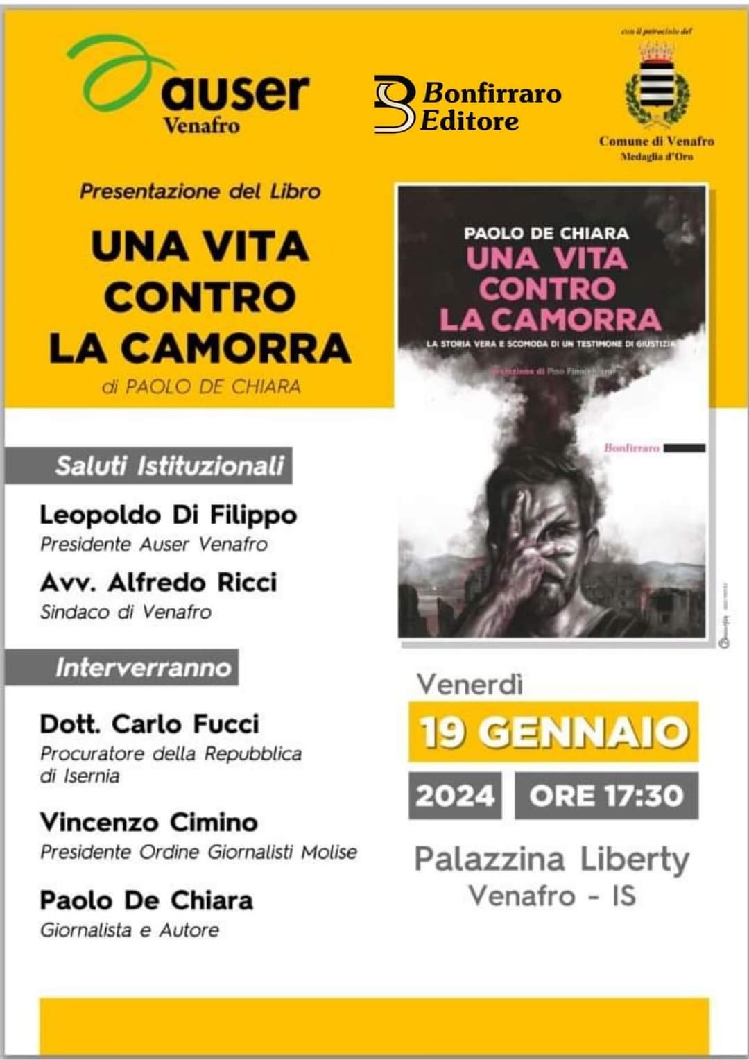 VENAFRO – Nell’ambito delle iniziative organizzate dall’Auser sarà presentato nella Palazzina Liberty il libro del giornalista e scrittore molisano Paolo De Chiara.