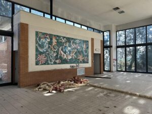 Voglio precisare che, naturalmente, sarà riservata massima attenzione al prezioso mosaico, realizzato a quattro mani dagli artisti Nicola Belloni e Lello Formichelli, che sarà preservato e successivamente valorizzato all’interno della nuova piscina.