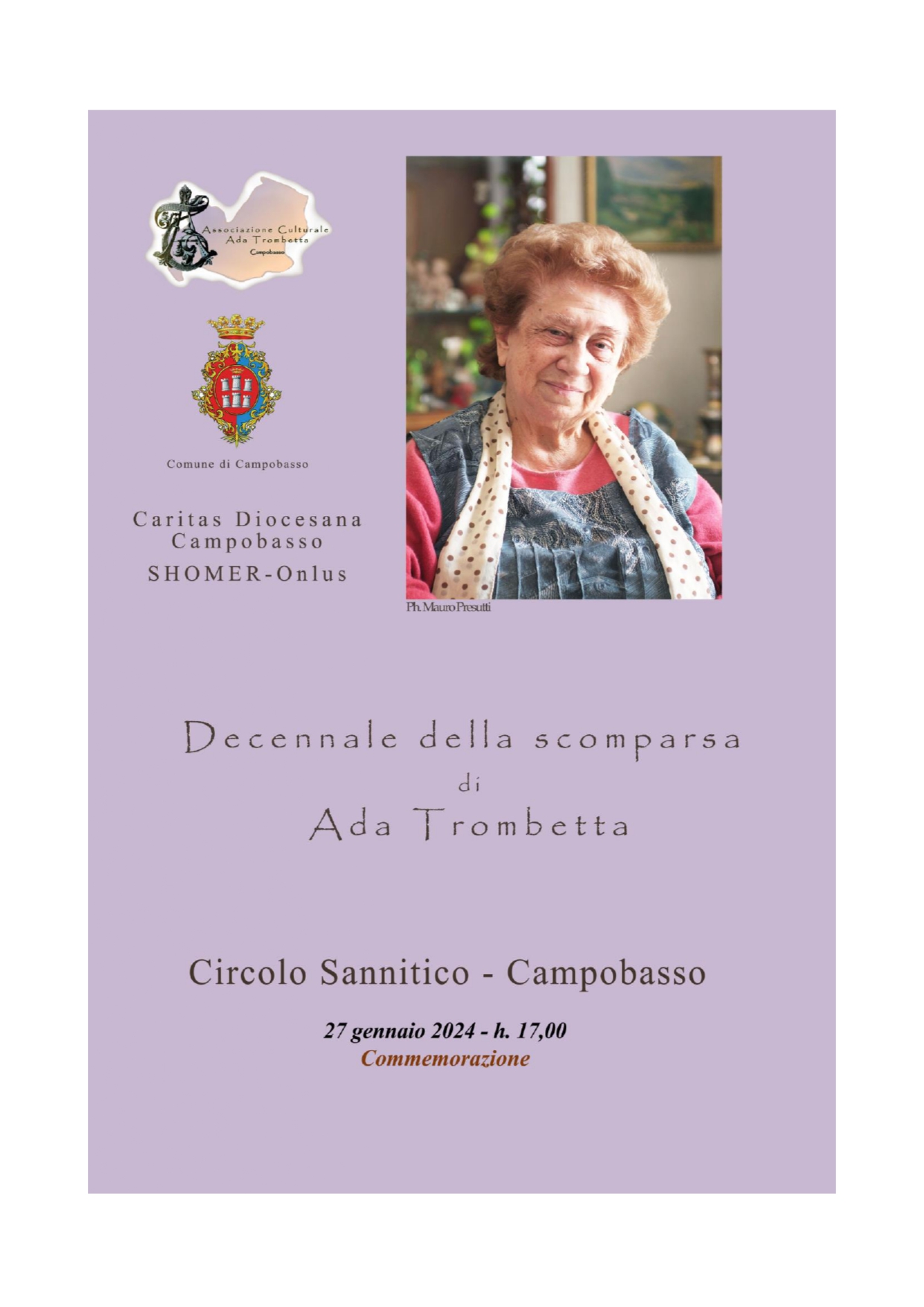 CAMPOBASSO – A dieci anni dalla sua scomparsa, Campobasso ricorda Ada Trombetta, personalità di straordinaria importanza nel panorama culturale della città e del Molise.