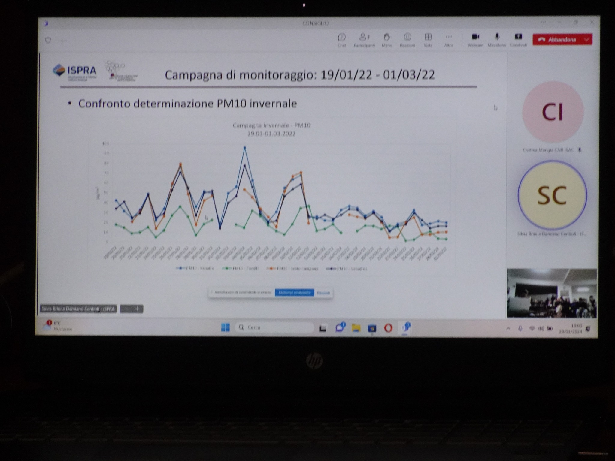 Dopo un primo iniziale scoramento per siffatte conclusioni che non hanno consentito tra l’altro il diritto di replica e il confronto per via del tempo trascorso – confronto che sarebbe stato necessario in considerazione di quanto affermato proprio nella relazione ISPRA del 2023 in cui vengono indicate le fonti in percentuale delle cause dell’inquinamento atmosferico e che non corrispondono solo ed esclusivamente alle emissioni degli impianti di riscaldamento casalinghi – la dottoressa Cristina Mangia del CNR che è intervenuta subito dopo ha messo in evidenza come i problemi della Piana siano essenzialmente due: la combustione di biomassa e gli impianti industriali che richiedono degli approfondimenti. La dottoressa ha affermato che bisogna agire su entrambe le problematiche soprattutto in relazione al superamento del PM10 sottolineando che emissioni anche più basse di quelle che si registrano a Venafro sono altamente dannose per la salute, pertanto occorre insistere sul monitoraggio e promuovere un’azione di riduzione delle emissioni legate alle due stazioni che insistono sul territorio.