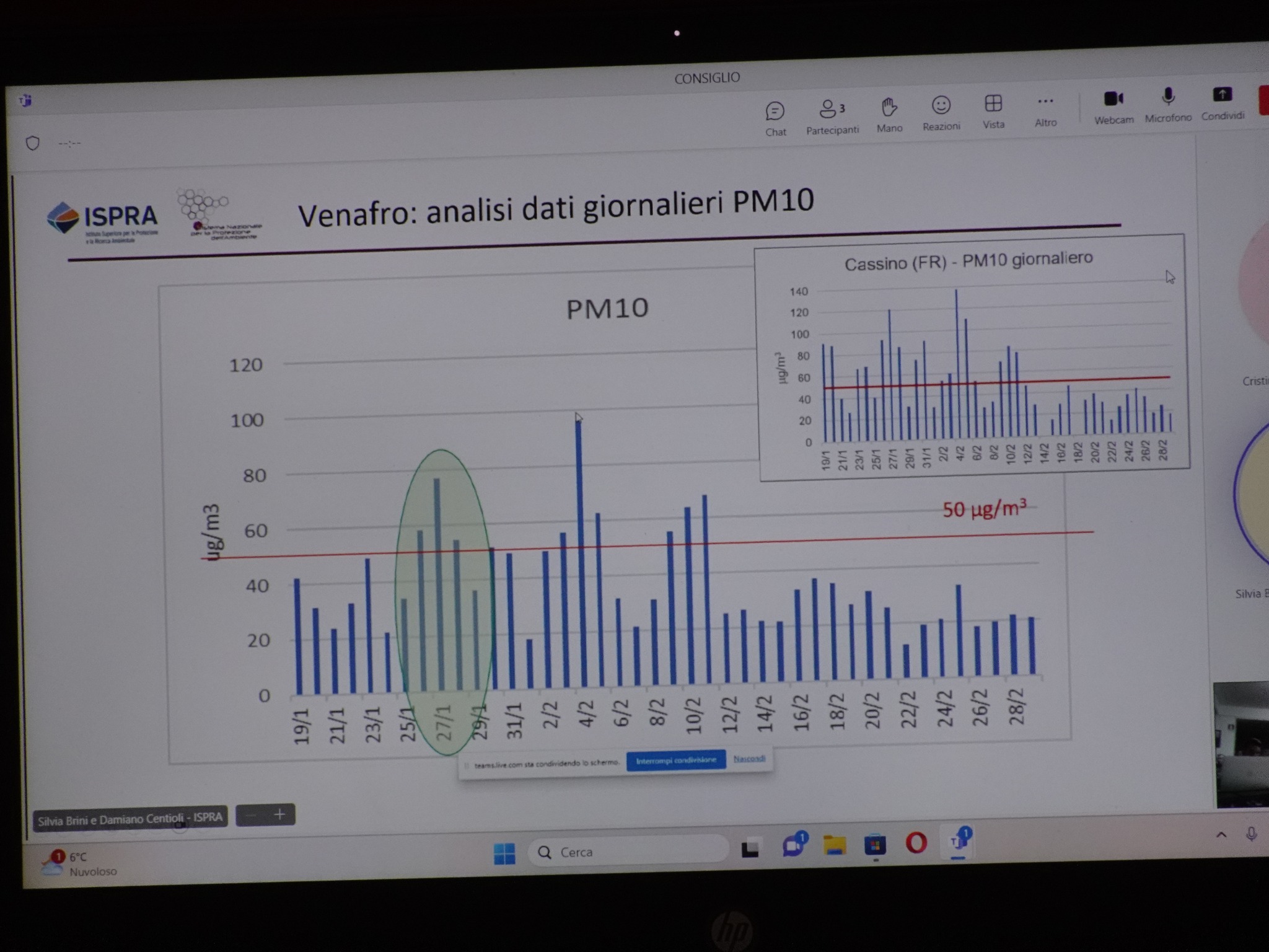 Con un intervento impostato sulla lettura di tabelle e grafici, gli esperti dell’ISPRA – intervenuti mediante collegamento in streaming – eludendo in qualche modo quelle che sono le dichiarazioni contenute nella relazione ISPRA del 2023 in cui vengono indicate le principali fonti inquinanti, hanno affermato che c’è un inquinamento atmosferico non trascurabile nella valle di Venafro ma avendo essi rilevato lacune conoscitive per effettuare uno studio completo e mancando quindi informazioni precise (come ad esempio quelle relative all’aspetto orografico e a quello meteorologico) hanno ritenuto opportuno suggerire un censimento degli impianti di riscaldamento dato che elevati sono i valori delle polveri legnose.