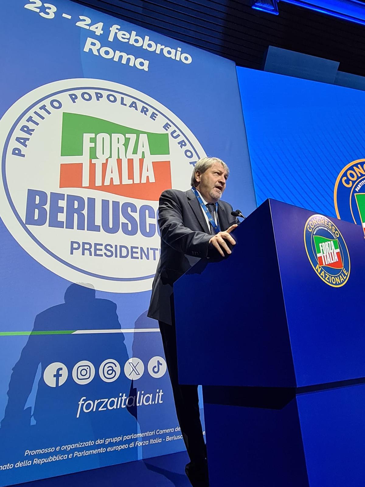 “Ricordo con grande emozione il primo Congresso Nazionale del nostro partito – le parole del Presidente Francesco Roberti – Uno dei primi pensieri di Berlusconi, da pochi giorni dimesso dall’ospedale ‘San Raffaele’ di Milano, fu quello di telefonarmi per un confronto e darmi alcuni consigli sull’imminente campagna elettorale delle Elezioni Regionali del Molise – le parole del Presidente Francesco Roberti – Due settimane dopo quella telefonata, Berlusconi ci lasciò. È stata una grande lezione di vita. Quando ricopri un ruolo di responsabilità, pure in un momento di difficoltà personale, anche di salute, non devi smettere mai di pensare agli altri, a coloro che ti hanno conferito la fiducia per amministrare e governare. Nella mia attività politica, amministrativa e di governo, anche dopo la mia elezione alla Presidenza della Giunta Regionale del Molise, non ho dovuto inventarmi niente, seguendo soltanto gli insegnamenti che ci hanno trasmesso Silvio Berlusconi e il nostro partito. Parlare alla gente con il cuore, calarsi nei problemi delle persone, dialogo e ascolto: solo così si può fare la politica vera, quella dell’esperienza maturata dal ricoprire il ruolo di amministratore comunale, provinciale, per poi arrivare ai governi regionale e nazionale”.“La politica vera – il discorso di Roberti – è quella della coerenza delle proprie idee e al proprio partito, all’interno del quale anche quando si ha una visione differente si riesce a trovare la sintesi, uscendo uniti e nel segno della partecipazione attiva. Questi insegnamenti, in Molise, nel 2023, ci hanno premiato col 62% dei consensi, perché i cittadini hanno riconosciuto la nostra coerenza e fedeltà alla comunità, al contrario di quanto fatto dal cosiddetto campo largo, i cui partiti per stare insieme hanno rinnegato il proprio passato”.