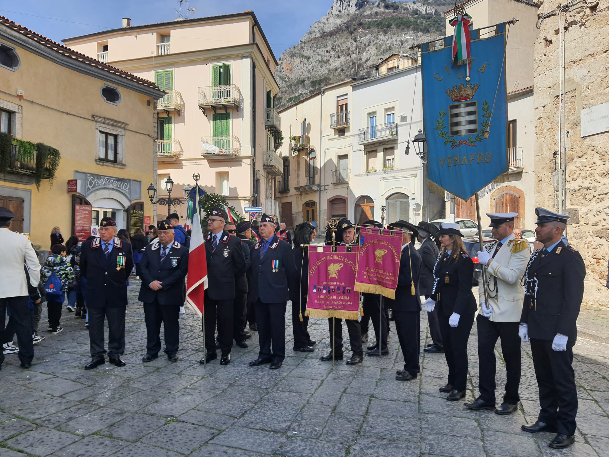 Dopo la S. Messa presso la Chiesa dell’Annunziata, è stata deposta una corona di alloro alle lapidi delle vittime della guerra apposte presso il Palazzo Comunale. Il corteo, è proseguito poi per via Plebiscito, via Garibaldi, p.zza Porta Nuova, piazzetta XV Marzo – dove è stata deposta una corona -, p.zza Vittorio Emanuele II, c.so Campano, via Roma ed infine p.zza Vittorio Veneto dove è stata deposta un’altra corona di alloro al Monumento ai Caduti è tenuto il discorso ufficiale.