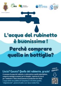 Bere quotidianamente l’ottima acqua dalla rete pubblica, al posto di quelle commerciali ed imbottigliate, oltre ad essere una soluzione a costo quasi “zero”, è un concreto gesto di attenzione verso l’ambiente che può contribuire a ridurre drasticamente l’uso smodato delle bottiglie di plastica (oggi ne produciamo circa 10 miliardi all’anno solo in Italia!), risparmiare risorse e ridurre sensibilmente la produzione generale di rifiuti.”
