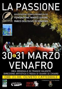 Sabato 30 e domenica 31 marzo alle ore 21:00 – proprio a ridosso delle festività pasquali che avranno il merito di conferire all’evento un aspetto ancora più suggestivo – sarà riproposta dunque, in quello scenario naturale ben noto ai venafrani e che presenta caratteristiche decisamente uniche e insostituibili, l’edizione 2024 de ‘La Passione’ vivente patrocinata dal comune di Venafro, prodotta dalla Fondazione Mario Lepore e dal Parco Regionale dell’Olivo, con la regia e la direzione artistica di Gianni Di Chiaro secondo l’idea originale di Franco Valente.