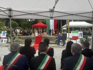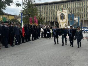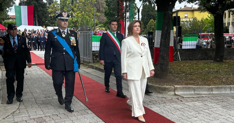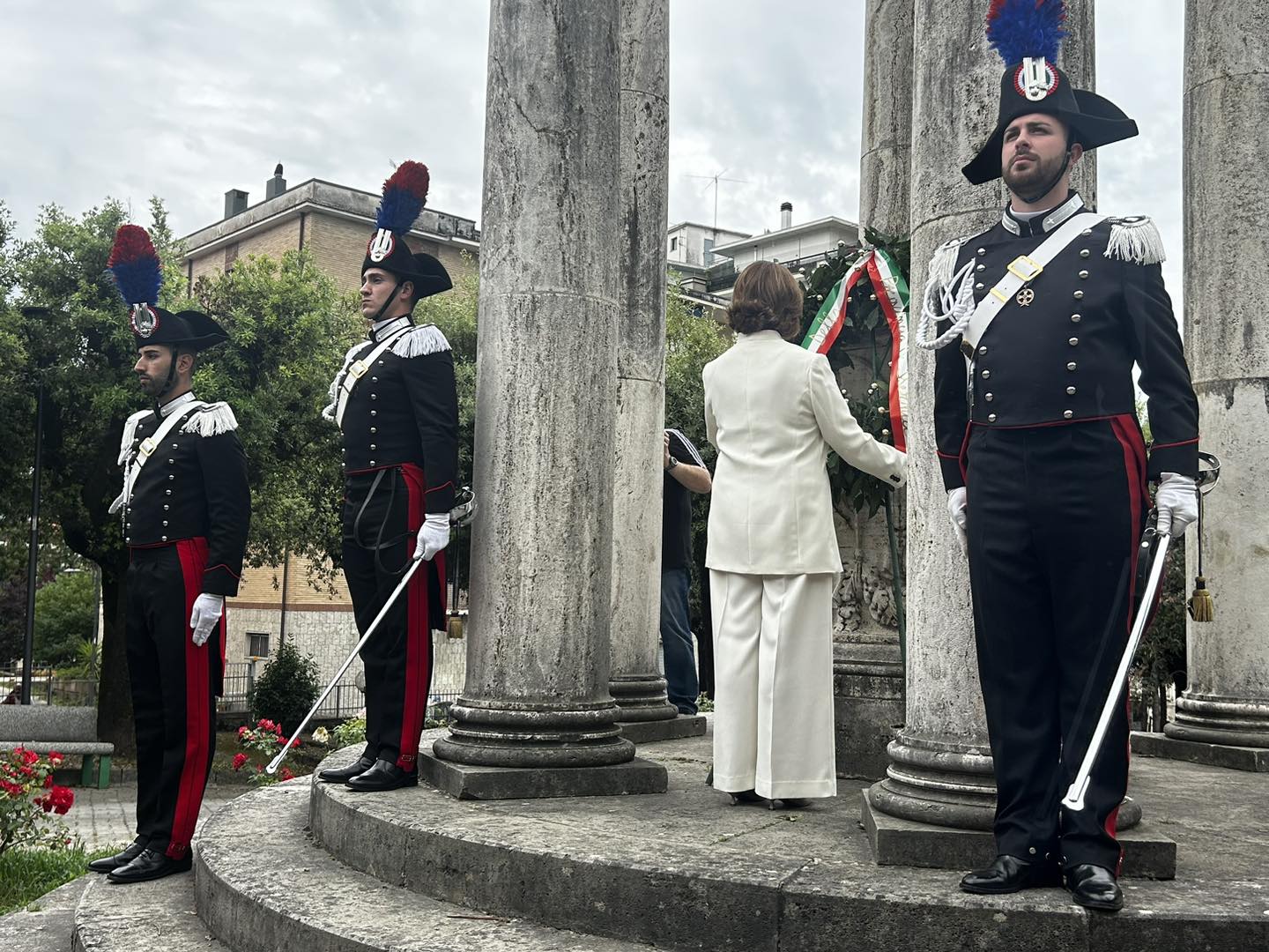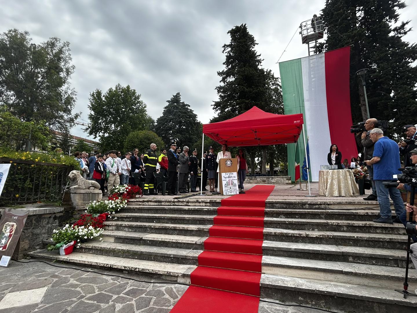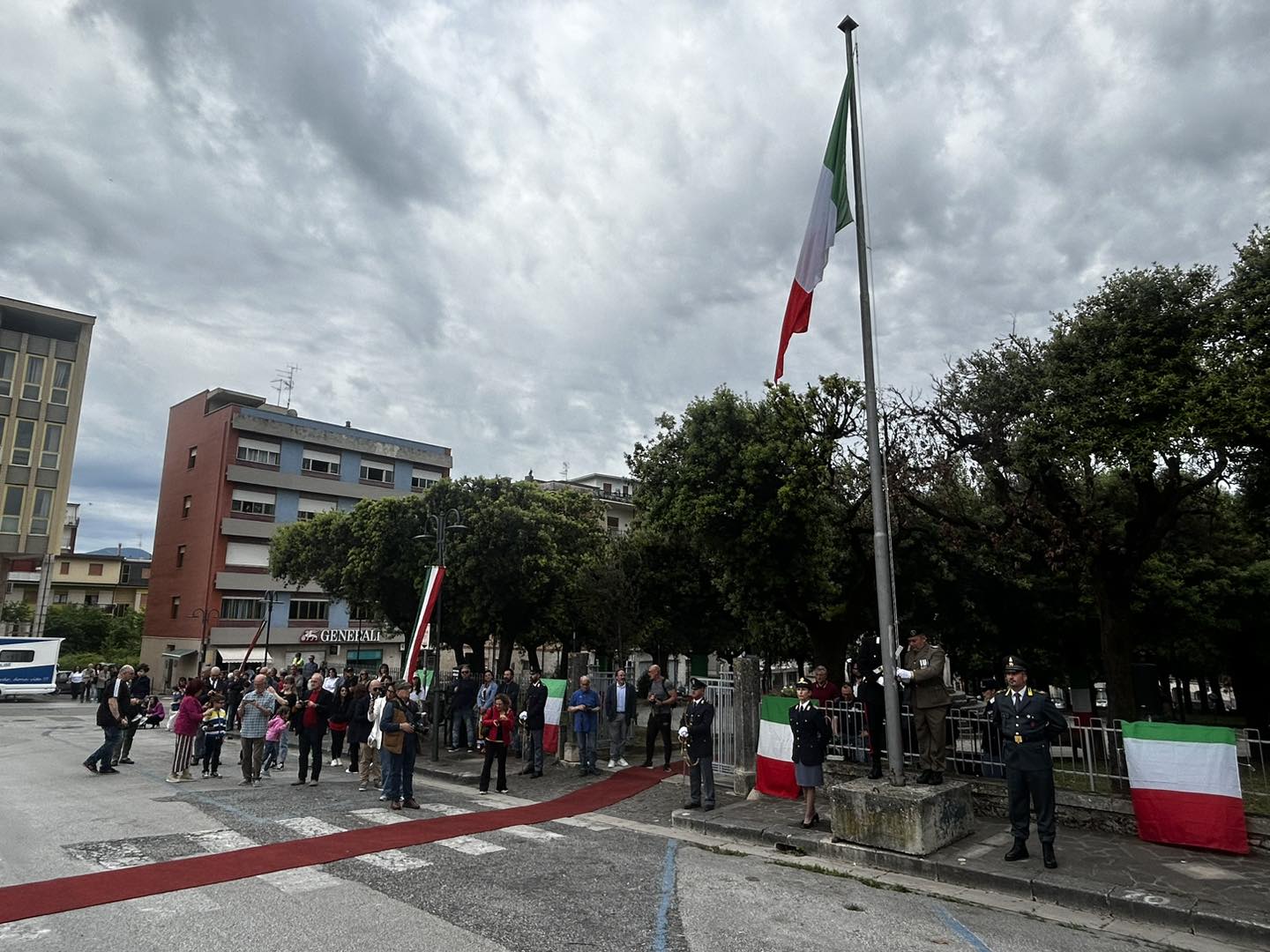 Presso il Monumento ai Caduti si sono schierati il picchetto d’onore, i gonfaloni dei Comuni decorati e delle associazioni combattentistiche, per l’alzabandiera e la deposizione della corona da parte del Prefetto, Franca Tancredi.
