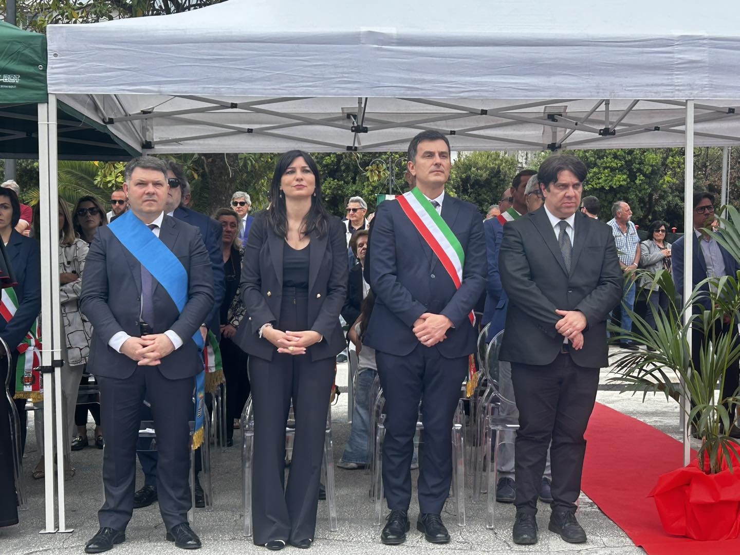 La cerimonia è poi proseguita nel piazzale antistante la villa comunale, alla presenza delle Autorità civili, militari e religiose ed è stata aperta a tutta la comunità, in particolare ai giovani.
