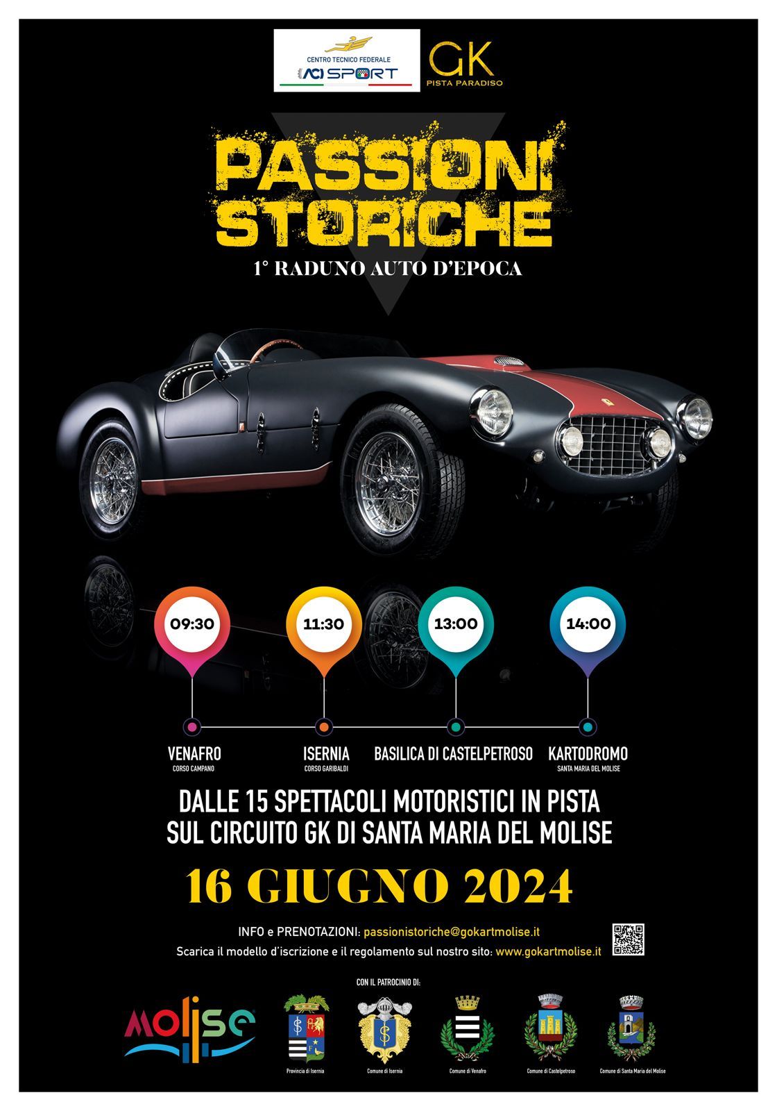 “Abbiamo voluto organizzare questo primo raduno per far conoscere le bellezze della nostra regione” – affermano soddisfatti gli organizzatori, Addolorato Cicchino, Domenico Bertoni e Luciano Matteo – in queste settimane abbiamo riscontrato l’enorme interesse degli appassionati anche di fuori regione, e siamo pronti per accogliere piloti e amanti di questo settore sulle strade della provincia di Isernia. Un ringraziamento doveroso va a tutte le Istituzioni che ci hanno supportato, ed in particolar modo al Comitato Festa di Venafro che dal primo minuto ha sposato il nostro progetto, inserendo l’evento nel calendario dei festeggiamenti. Siamo certi sarà una bellissima giornata all’insegna dello sport e della passione per queste splendide autovetture”.