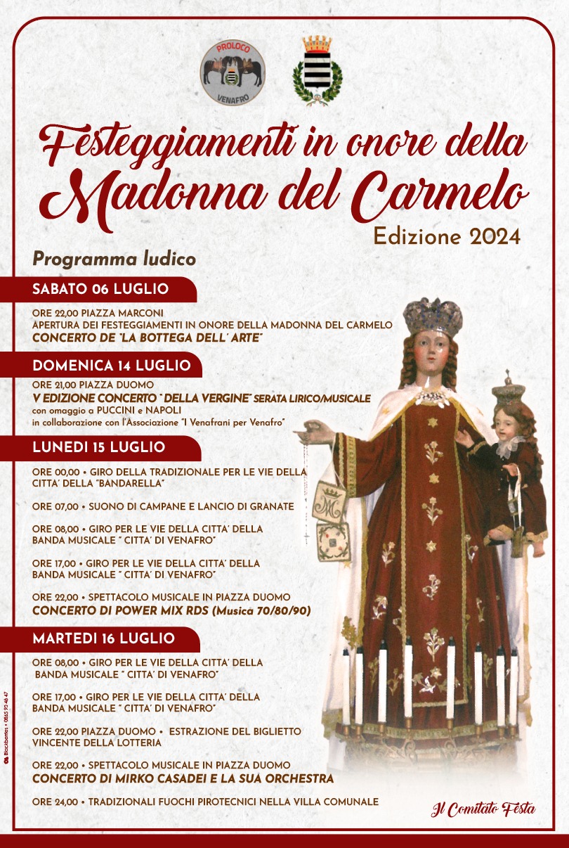 VENAFRO – Presentato dal Comitato Festa il programma ludico che accompagna la solennità della Madonna del Carmelo.