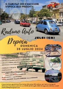 Il Club Fiat 500 e macchine d’epoca Jelsi garantisce l’iscrizione alle prime 120 auto. C’è tempo fino alle 20:00 del 22 luglio.