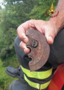 Nella foto un residuo di una probabile mima anti uomo di fabbricazione tedesca risalente alle seconda guerra mondiale.