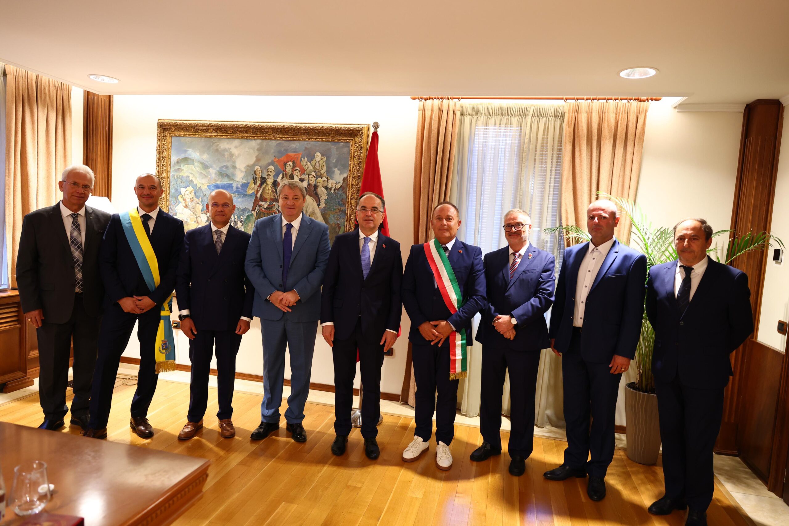 CAMPOBASSO – Il Presidente della Giunta Regionale del Molise, Francesco Roberti, insieme al Presidente del Consiglio Regionale del Molise, Quintino Pallante, al sindaco di Montecilfone, Giorgio Manes, e con una delegazione molisana, è stato ricevuto questa mattina, lunedì 26 agosto 2024, dal Presidente della Repubblica d’Albania, Onorevole Bajram Begaj.