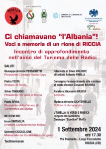 ribadisce il suo impegno per costruire insieme gli attori locali e istituzionali una proposta strutturata per un settore strategico per il turismo nella nostra regione, patrocinando l’incontro di approfondimento in programma a Riccia il 1 settembre prossimo, dal titolo “Ci chiamavano l’Albania! Voci e memorie di un rione di Riccia”. Lo dichiara il presidente regionale Angelo Angiolilli.