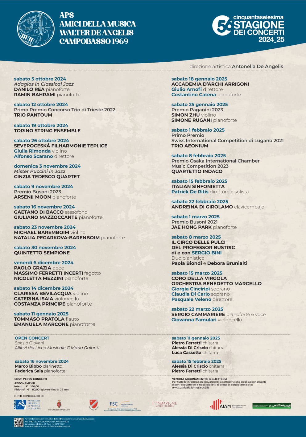 Amici della Musica, Campobasso, stagione concertistica, cartellone