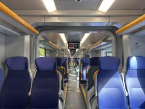 Ѐ un treno di ultima generazione, con 300 posti a sedere ed una capienza complessiva di 500 posti. Ѐ stato costruito con materiali totalmente riciclabili e avrà minore impatto sull’ambiente.