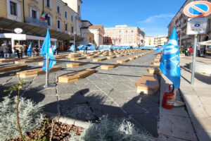 CAMPOBASSO – Oltre 100 le bare adagiate in Piazza Prefettura che la UIL regionale ha usato per sensibilizzare l’opinione pubblica sul tema delle morti bianche.