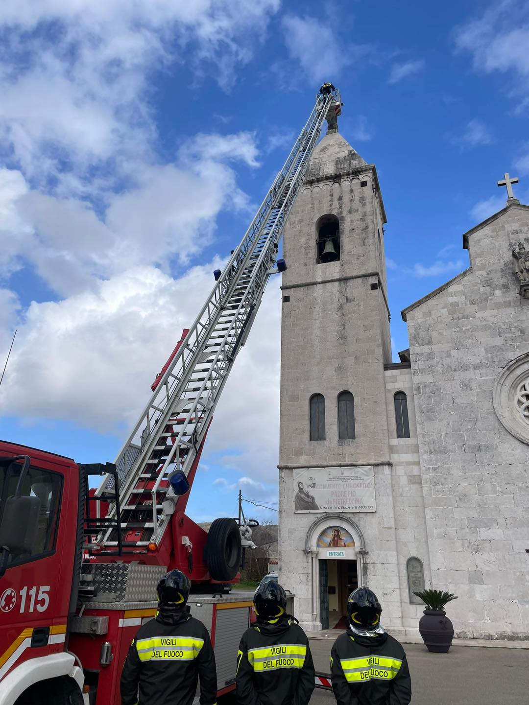 Una corona di fiori, infatti, dopo la celebrazione religiosa delle 10:30 in Basilica, è stata apposta dai Vigili del Fuoco del Comando Provinciale di Isernia che con le scale mobili del Corpo, sviluppata per circa 25 metri di altezza, sono saliti in vetta al campanile per cingere coi fiori l’immagine dell’Immacolata.