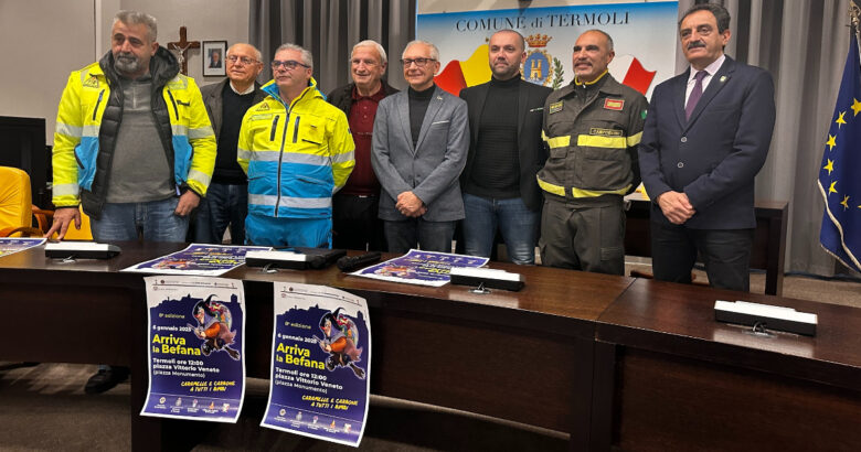 “A presentare l’ottava edizione della manifestazione “Arriva la Befana” erano presenti, nella sala consiliare del Comune – si legge in una nota – il Sindaco Nicola Balice, il vicesindaco e assessore alla Cultura Michele Barile, Pietro Inserillo del Distaccamento dei Vigili del Fuoco di Termoli, Silvestro Belpulsi Lions Club Termoli Host, Patrizia Colantuoni, Pasqualino Arcari e Luciano Rampa della Misericordia di Termoli e Aldo Ciccone dell’Associazione Nazionale dei Vigili del Fuoco.