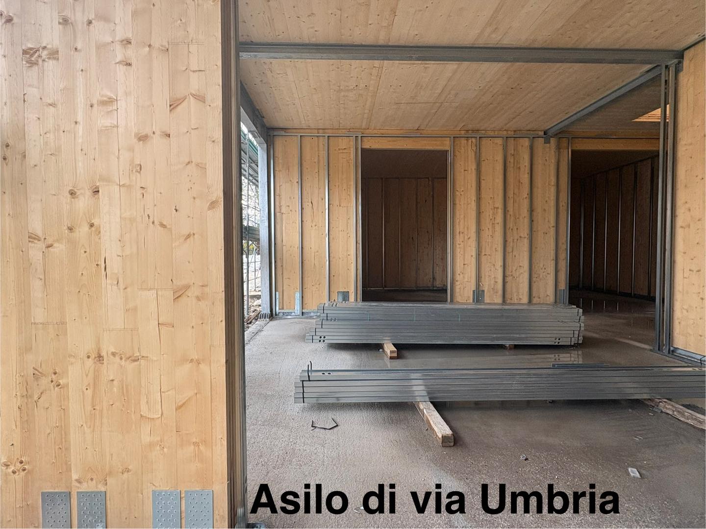 - Il nuovo edificio di via Umbria, in cui sono già state alzate le pareti e suddivisi gli spazi interni, potrà ospitare fino a 60 bambini;