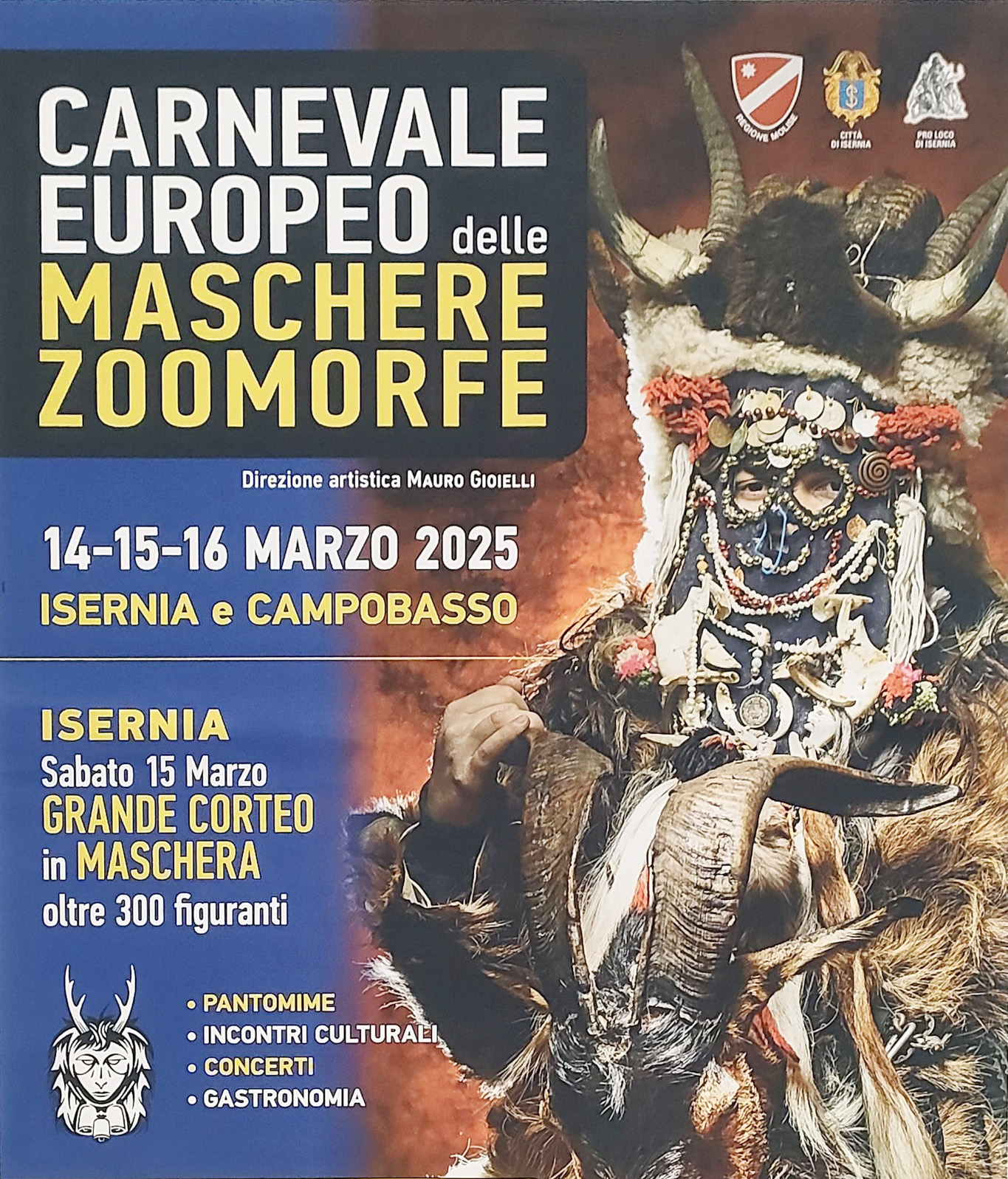 ISERNIA – Il Molise si appresta a ricevere diverse migliaia di turisti a Isernia e Campobasso, in occasione della terza edizione del Carnevale Europeo delle Maschere Zoomorfe, che si terrà nei giorni 14, 15 e 16 marzo.