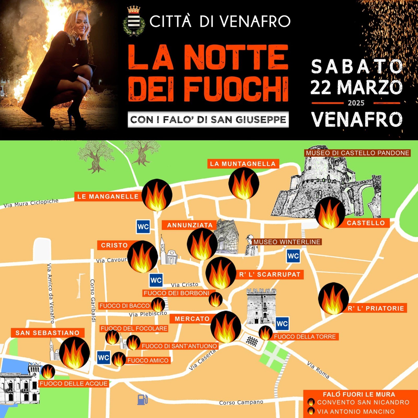 Appuntamento dunque a domani sabato 22 marzo con l’accensione dei fuochi prevista per le ore 20:00, in un viaggio che spazia nel tempo della tradizione e della cultura e che il filosofo venafrano Francesco Giampietri soleva definire poeticamente come “la notte dei miracoli che scaccia l’inverno. Ed è una gioia immensa riscoprire il centro storico finalmente vivo, brulicante di vita e di energia giovanile”.