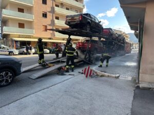 VENAFRO – Autoarticolato carico di automobili ha preso fuoco in via Colonia Giulia. La probabile causa dell’incendio è stata un guasto ai freni del mezzo.