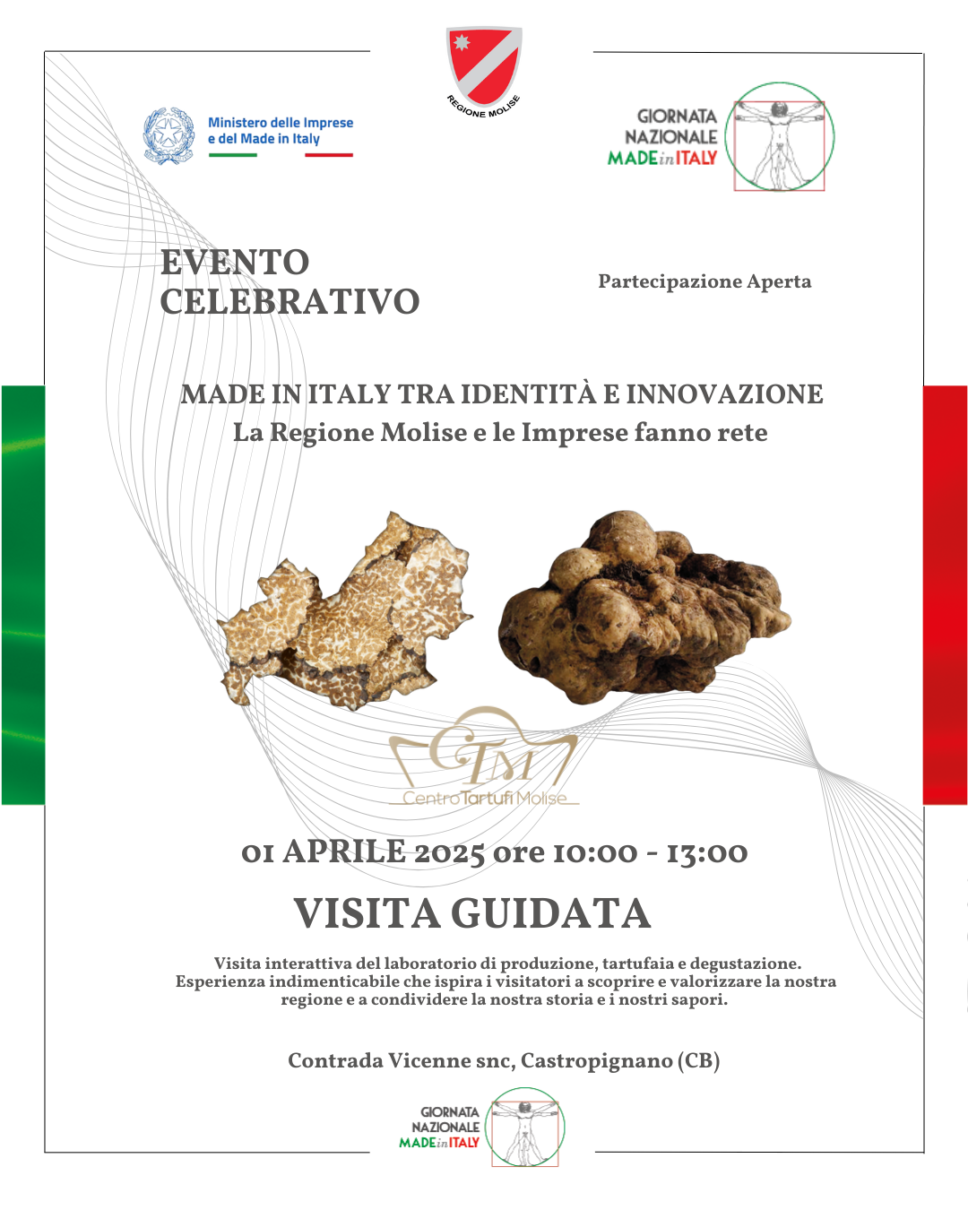 CASTROPIGNANO – Domani, 1 aprile, il Centro Tartufi Molise (CTM) aprirà le porte alla comunità locale per il primo appuntamento delle celebrazioni della giornata nazionale del Made in Italy.