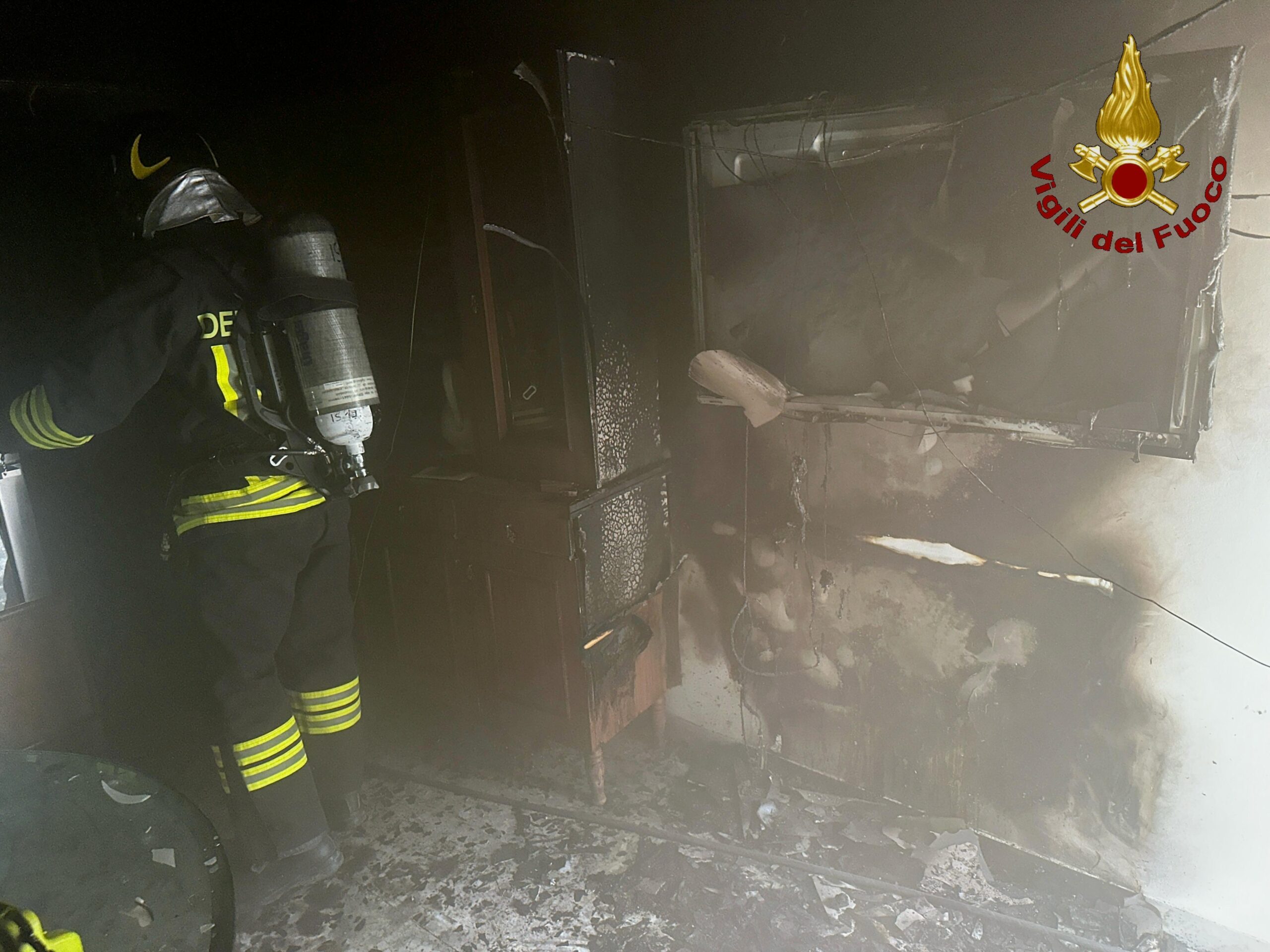 Le fiamme, con ogni probabilità causate da un corto circuito partito da un televisore, si sono sviluppate nella cucina dell’appartamento, fortunatamente senza espandersi ad altre zone della casa.