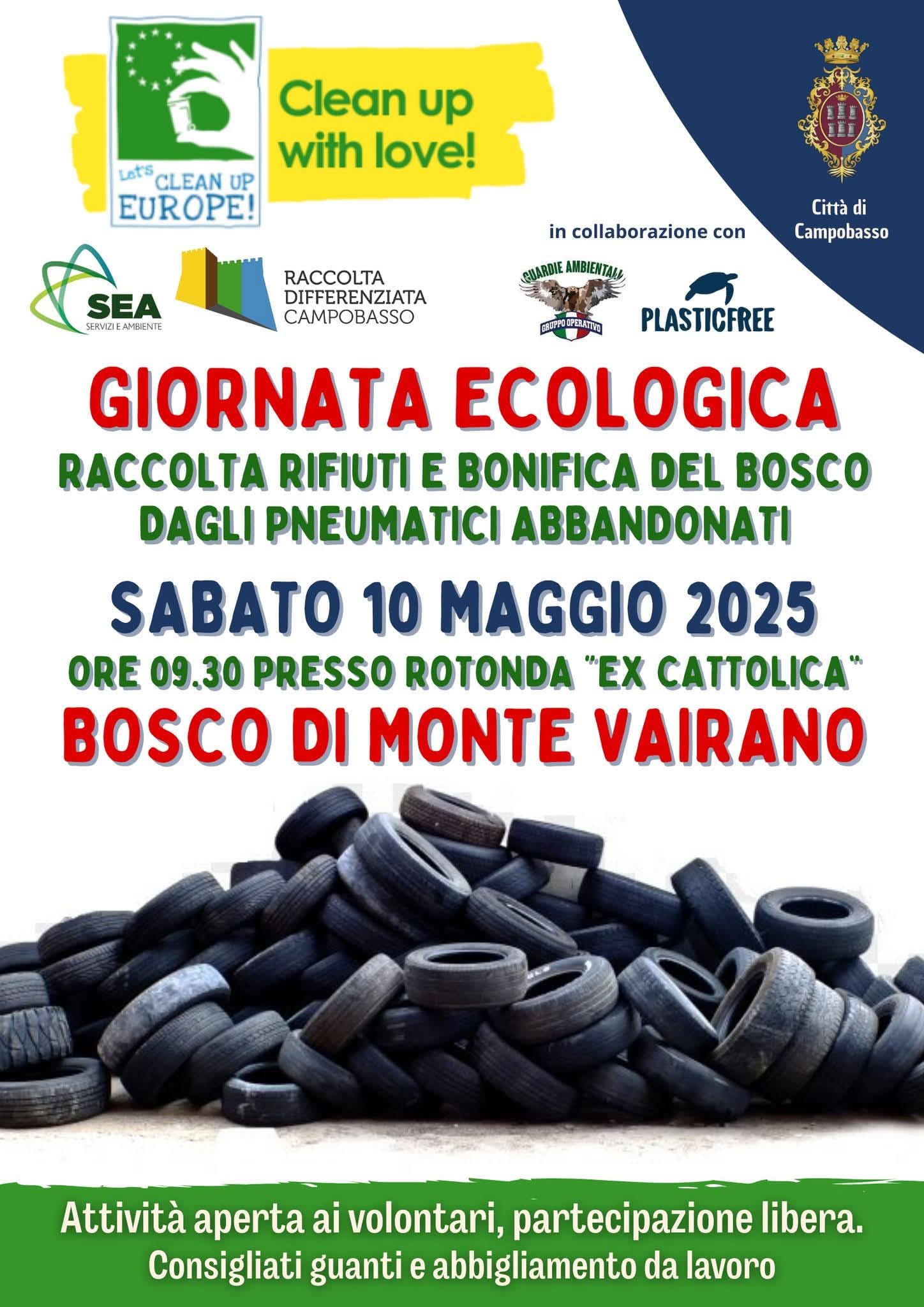 CAMPOBASSO – Sabato 10 maggio 2025, anche Campobasso parteciperà alla giornata di pulizia europea Let’s Clean Up Europe, che si svolgerà in contemporanea in numerose città italiane ed europee per sensibilizzare sulla dispersione incontrollata dei rifiuti.