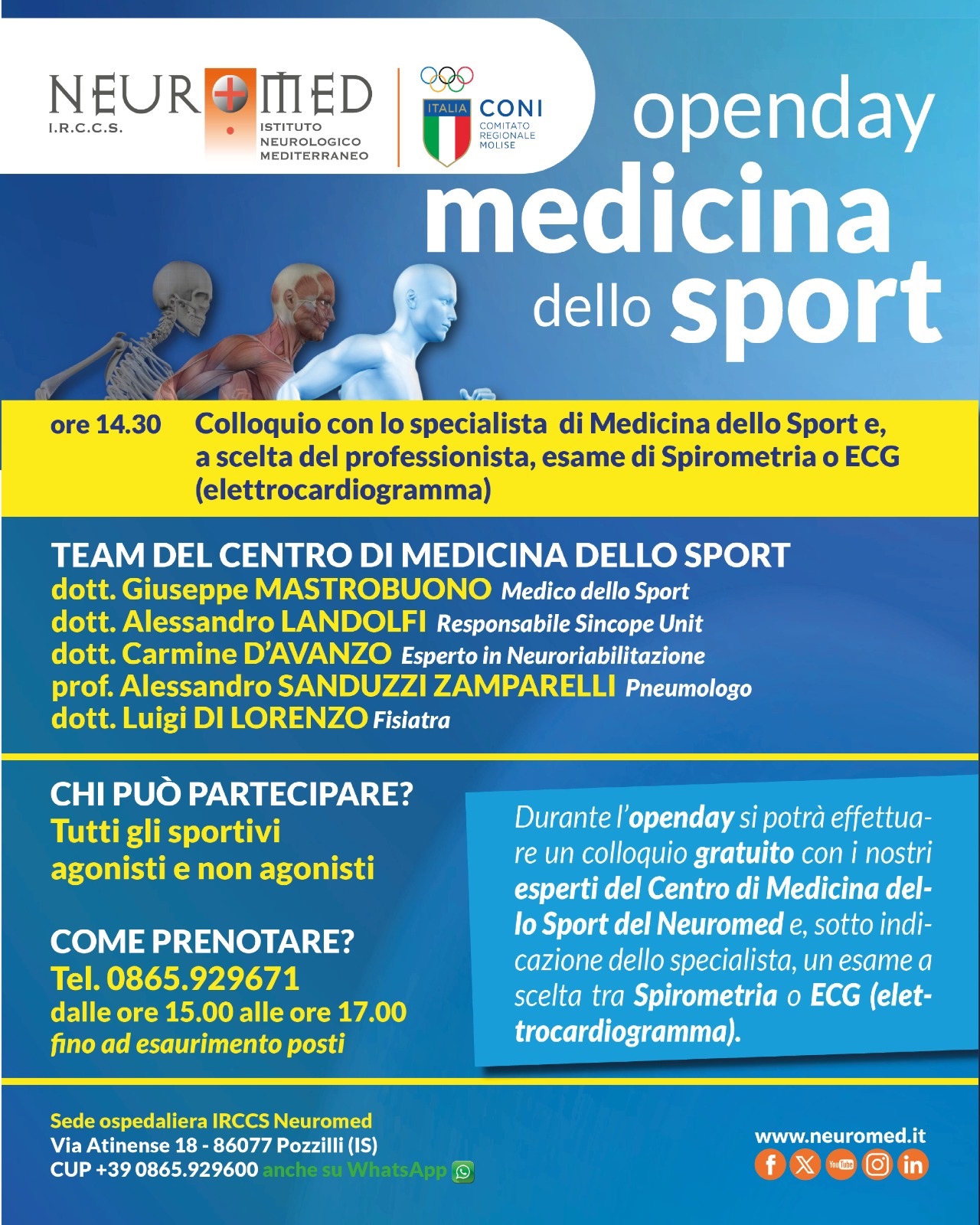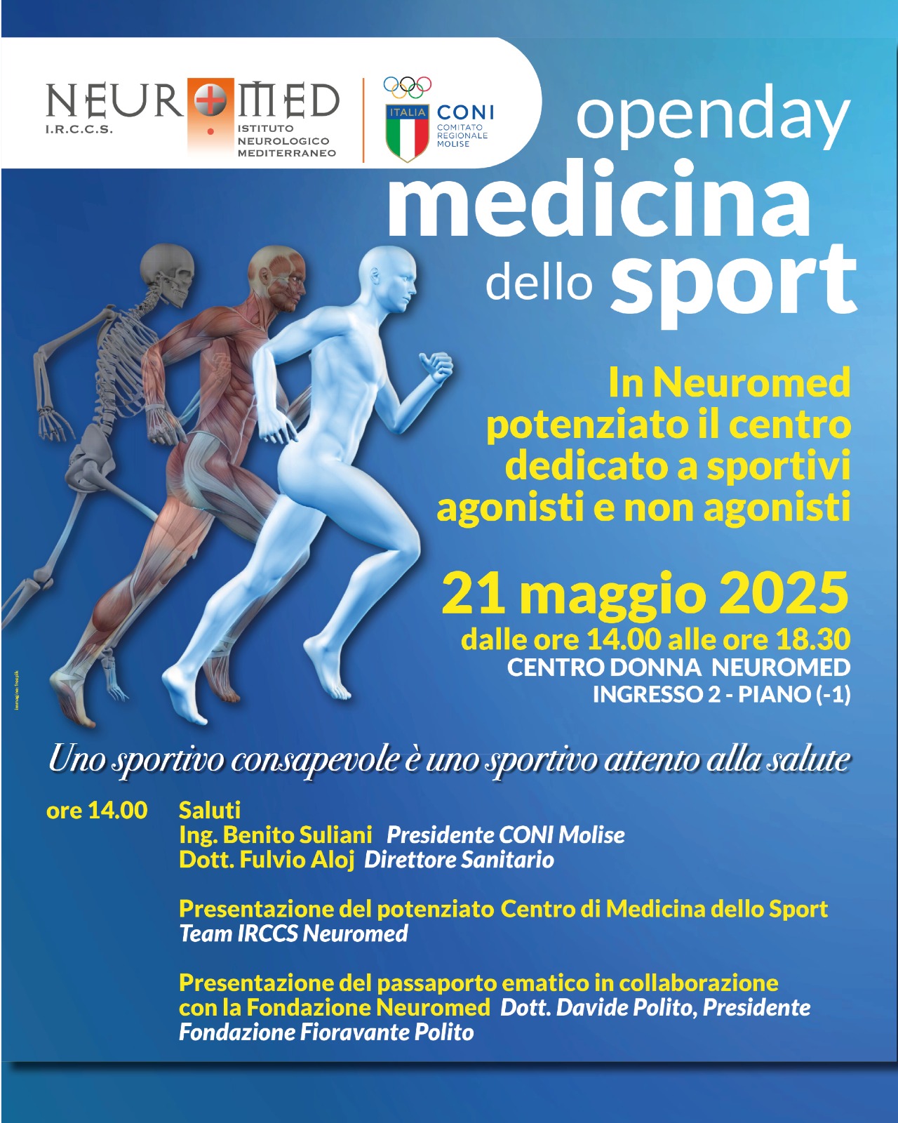 POZZILLI – Mercoledì, 21 maggio, a partire dalle ore 14, l’I.R.C.C.S. Neuromed presenterà il potenziato Centro di Medicina dello Sport.
