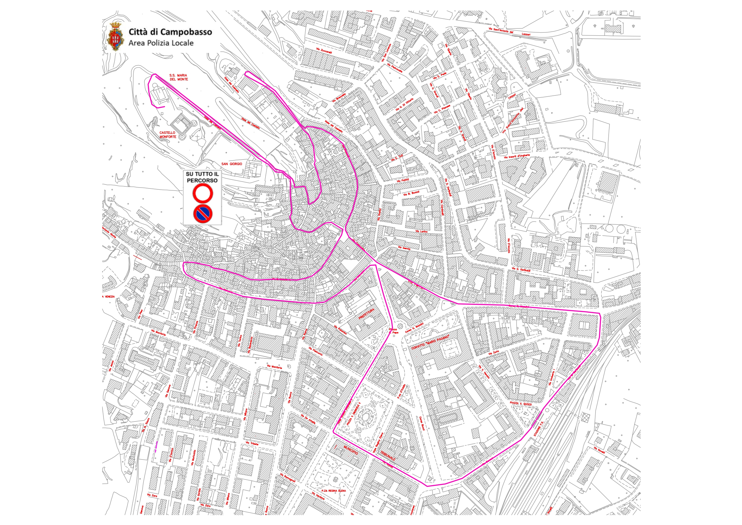 CAMPOBASSO – In occasione della tradizionale processione in onore della Madonna Incoronata del Monte, in programma sabato 31 maggio 2025, con partenza alle ore 18:00, il dirigente della Polizia Locale ha firmato l’ordinanza n.197 del 27/05/2025, che dispone il divieto di transito e di sosta con rimozione in alcune strade cittadine per consentire l’allestimento dell’Infiorata e il passaggio del corteo religioso.